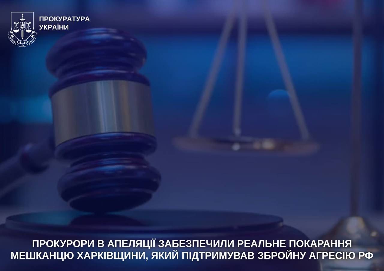 Прокурори в апеляції забезпечили реальне покарання мешканцю Харківщини, який підтримував збройну агресію рф